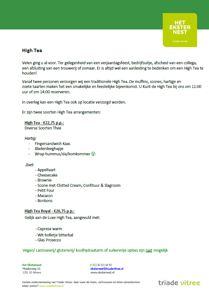 • plaatgebak € 4,25 per persoon